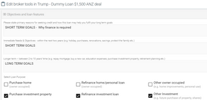 Premium Brokers compliance requires Brokers to make reasonable enquiries into a clients wants and needs from a loan. These objectives need to be declared and noted within VowNet on the Objectives. Categories to be noted include